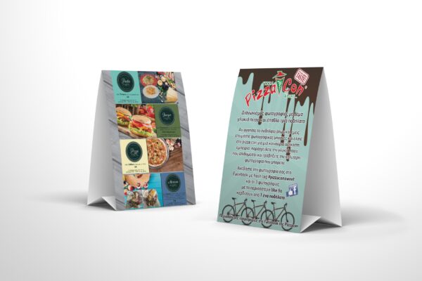 ⚫️ Διαφημιστικό σταντ για τραπέζι εστιατορίου η μπάρ. Διάσταση 10×15 2 όψεις (λάμδα κολλητό)  300gr χαρτί 4χρωμία εκτύπωση.